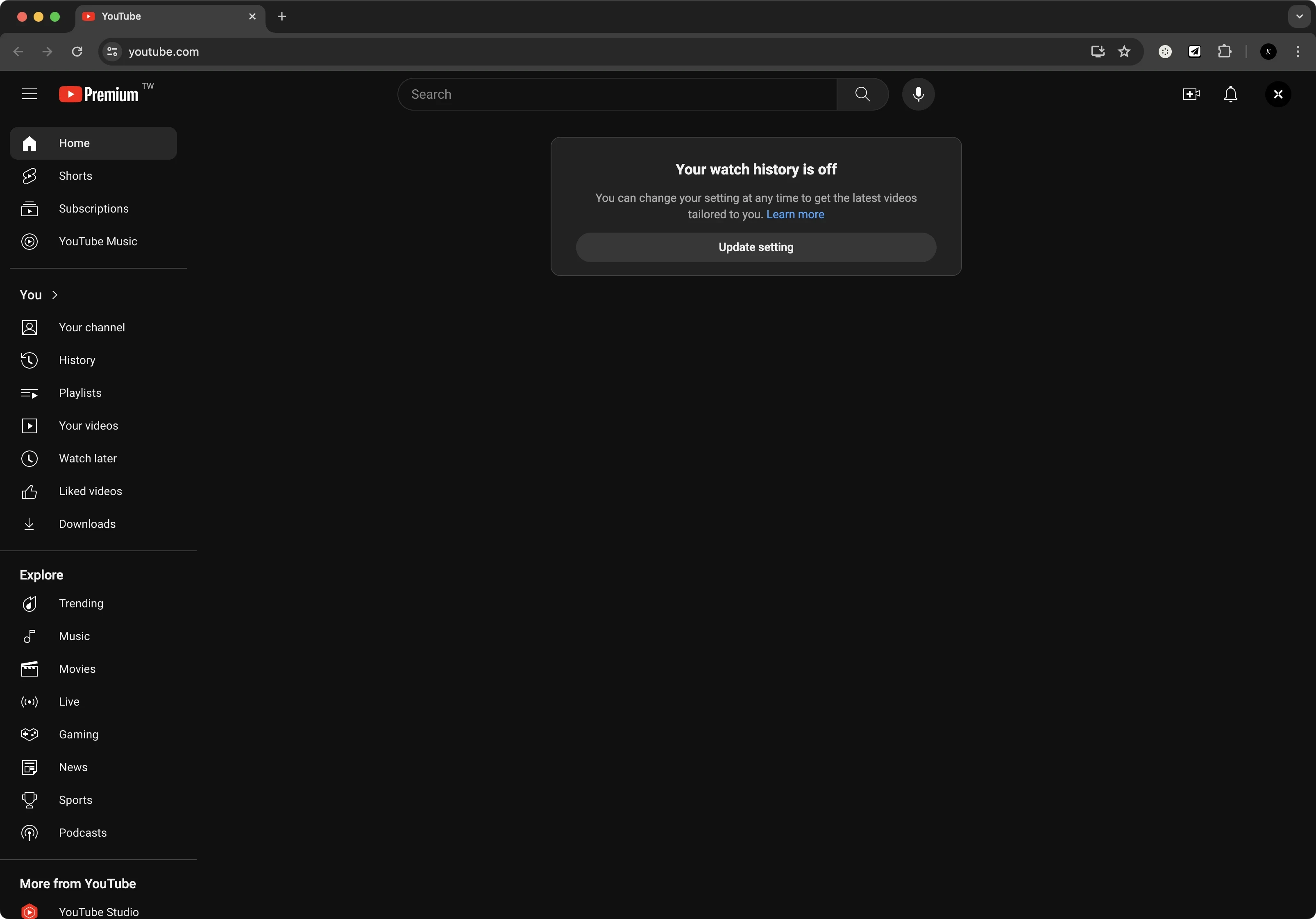 我最近關閉 Youtube 的搜尋和觀看紀錄後,我的首頁和 Shorts 都會直接顯示為空白,大幅降低了干擾。這讓我能專注在我真正關心的內容,不被其他不必要的資訊影響。