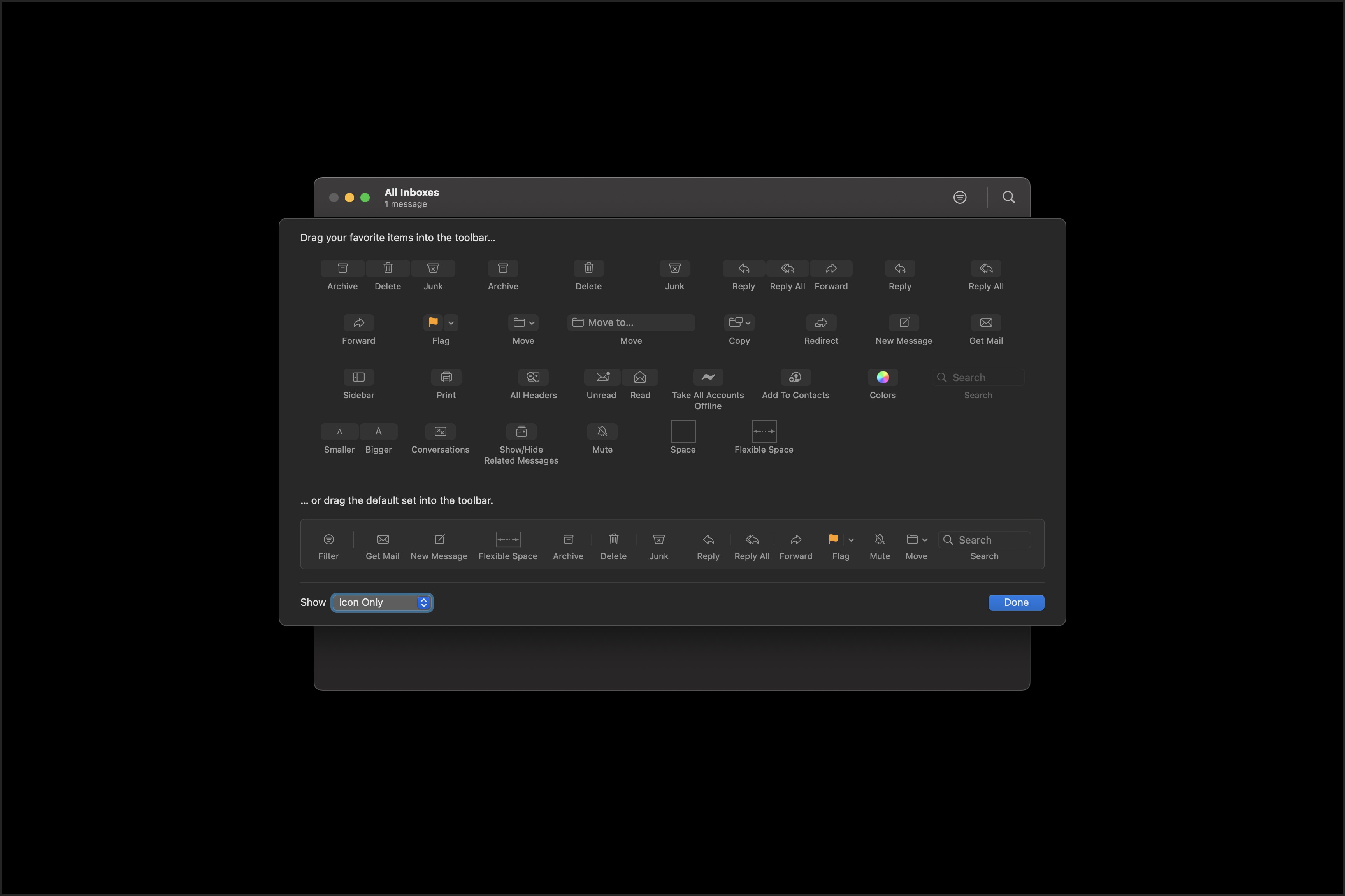 我刪除了幾乎所有的功能。因為這是唯一沒辦法透過快捷鍵所使用的功能。(後面我會列出常用的快速鍵,讓你可以更有效率的處理信件)